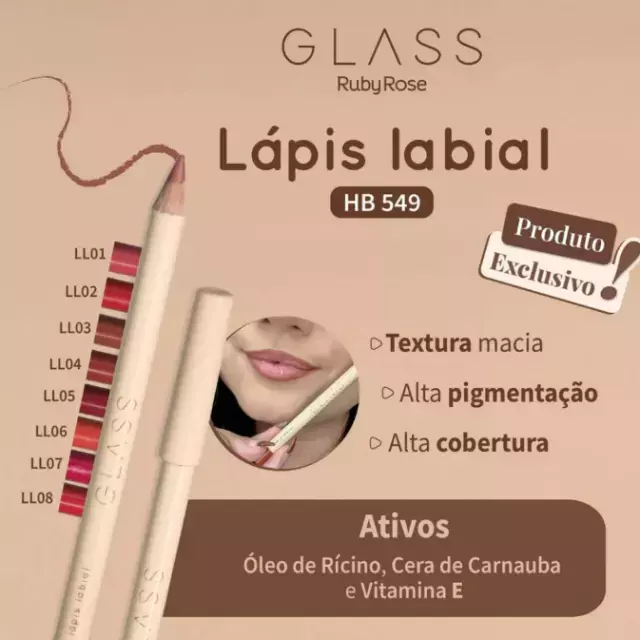 O Lápis Labial possue uma textura macia e ativos hidratantes em sua fórmula, além de alta cobertura e pigmentação.